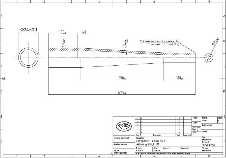 Columbus fork blades for disc - 24 round - 1.2/.9 wall - length = 475